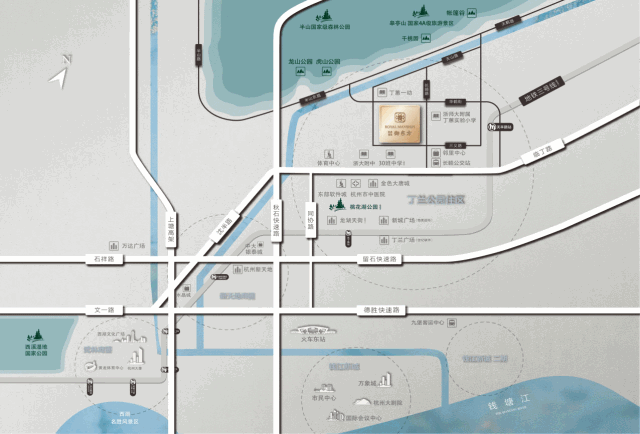 秋石高架、上塘高架、德胜快速路等均在附近,从项目出发,开车到武林广场、钱江新城,仅需20-30分钟时间。