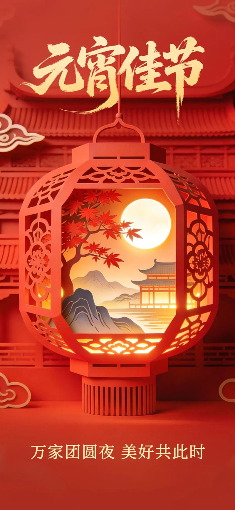今天是农历正月十五, 我们迎来丙午马年元宵节。 元宵又称上元节, 正月是农历的元月, 古人称“夜”为“宵”, 一年中第一个月圆之夜被称为元宵节。 元宵节自古有“灯节”之称, 人们赏花灯,猜灯谜, 将从除夕开始延续的庆祝活动推向又一个高潮。 一盏盏花灯点亮夜空, 摇曳的灯火映照出国泰民安的祥和画卷, 承载着人们对生活的炽热情怀。 愿我们带着这份灯火里的温情、 月光下的期许, 奔赴更美好的明天!
